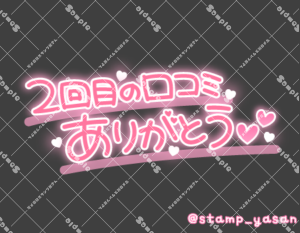 「2回目の口コミありがとう」のスタンプ 2024 6/07 2024年6月7日 0 こちらの画像はサンプルです。保存やSNS等への掲載はご遠慮ください。会員登録・ログイン後に表示される『本画像』をダウンロードしてご利用ください。 用途お礼・感謝お礼・感謝全般カラータグありがとう口コミ ありがとう 口コミ 文字 タメ語 横書き 透過 この記事が気に入ったら フォローしてね! Follow @stamp_yasan_sub Follow me! 「きょうもお仕事お疲れ様 頑張った昼の部のあとは私との夜の部でもうひと頑張り一緒にいい汗かいてくれるでしょ?」のスタンプ 「3回目の口コミありがとう」のスタンプ