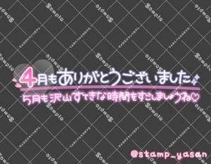 「4月もありがとうございました 5月も沢山すてきな時間をすごしましょうね」のスタンプ 2025 4/25 2025年4月25日 0 こちらの画像はサンプルです。保存やSNS等への掲載はご遠慮ください。会員登録・ログイン後に表示される『本画像』をダウンロードしてご利用ください。 用途あいさつ月末・月初のあいさつカラータグ4月5月ありがとう 4月 5月 ありがとう 文字 敬語 横書き 透過 この記事が気に入ったら フォローしてね! Follow @stamp_yasan_sub Follow me! 「写真よりかわいいっておほめの言葉よく頂きとっても嬉しいです」のスタンプ 「あなたのことめちゃくちゃに犯してもいい?」のスタンプ