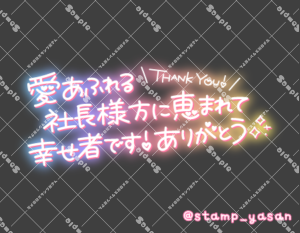 「愛あふれる上司様方に恵まれて幸せ者です!ありがとう」のスタンプ 2023 10/01 2023年10月1日 0 こちらの画像はサンプルです。保存やSNS等への掲載はご遠慮ください。会員登録・ログイン後に表示される『本画像』をダウンロードしてご利用ください。 用途お礼・感謝お礼・感謝全般予約・来店へのお礼カラータグありがとうイメクラ上司 ありがとう イメクラ 上司 文字 タメ語 横書き 透過 この記事が気に入ったら フォローしてね! Follow @stamp_yasan_sub Follow me! 「愛あふれる社長様方に恵まれて幸せ者です!ありがとう」のスタンプ 「愛あふれる先生方に恵まれて幸せ者です!ありがとう」のスタンプ
