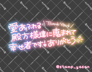 「愛あふれる殿方様達に恵まれて幸せ者です!ありがとう」のスタンプ 2023 10/01 2023年10月1日 0 こちらの画像はサンプルです。保存やSNS等への掲載はご遠慮ください。会員登録・ログイン後に表示される『本画像』をダウンロードしてご利用ください。 用途お礼・感謝お礼・感謝全般予約・来店へのお礼カラータグありがとう殿方 ありがとう 殿方 文字 タメ語 横書き 透過 この記事が気に入ったら フォローしてね! Follow @stamp_yasan_sub Follow me! 「愛あふれるご主人様方に恵まれて幸せ者です!ありがとう」のスタンプ 「愛あふれる紳士様方に恵まれて幸せ者です!ありがとう」のスタンプ