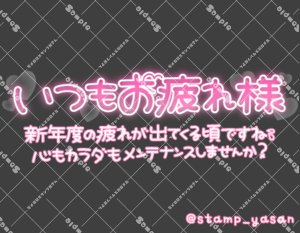 「あなたの特効薬はわたしだよ おいでおいで♡沢山元気にしてあげる♡」のスタンプ 2025 5/12 2025年5月12日 0 こちらの画像はサンプルです。保存やSNS等への掲載はご遠慮ください。会員登録・ログイン後に表示される『本画像』をダウンロードしてご利用ください。 カラータグ癒やし 癒やし 文字 タメ語 横書き 透過 この記事が気に入ったら フォローしてね! Follow @stamp_yasan_sub Follow me! 「この足で大事なトコロさすさすしてもいい?」のスタンプ 「いつもお疲れ様 新年度の疲れが出てくる頃ですね 心もカラダもメンテナンスしませんか?」のスタンプ