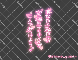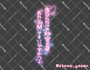「あなたと私だけの究極のキモチイイを二人でみつけよう」のスタンプ 2025 9/25 2025年9月25日 0 こちらの画像はサンプルです。保存やSNS等への掲載はご遠慮ください。会員登録・ログイン後に表示される『本画像』をダウンロードしてご利用ください。 カラータグ秘密 秘密 文字 タメ語 縦書き 透過 この記事が気に入ったら フォローしてね! Follow @stamp_yasan_sub Follow me! 「あなただけの秘密の扉、わたしが開いてもいいですか?」のスタンプ 「当日のお誘いはお店にTelが確実 翌日以降のお誘いは姫予約が嬉しいです」のスタンプ