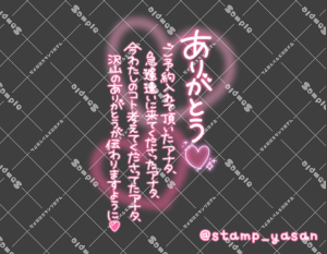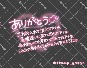 「ありがとう ご予約入れて頂いたアナタ、急遽逢いに来てくださったアナタ、今わたしのコト考えてくださってたアナタ、沢山のありがとうが伝わりますように」のスタンプ 2024 2/09 2024年2月9日 0 こちらの画像はサンプルです。保存やSNS等への掲載はご遠慮ください。会員登録・ログイン後に表示される『本画像』をダウンロードしてご利用ください。 用途お礼・感謝お礼・感謝全般予約・来店へのお礼カラータグ予約ありがとう 予約 ありがとう 文字 敬語 縦書き 透過 この記事が気に入ったら フォローしてね! Follow @stamp_yasan_sub Follow me! 「ありがとう」のスタンプ 「ありがとう ご予約入れて頂いたアナタ、急遽逢いに来てくださったアナタ、今わたしのコト考えてくださってたアナタ、沢山のありがとうが伝わりますように」のスタンプ