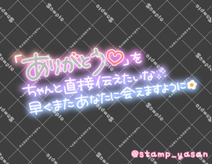 「『ありがとう♡』をちゃんと直接伝えたいな 早くまたあなたに会えますように」のスタンプ 2025 4/26 2025年4月26日 0 こちらの画像はサンプルです。保存やSNS等への掲載はご遠慮ください。会員登録・ログイン後に表示される『本画像』をダウンロードしてご利用ください。 用途お礼・感謝予約・来店へのお礼カラータグありがとう ありがとう 文字 タメ語 横書き 透過 この記事が気に入ったら フォローしてね! Follow @stamp_yasan_sub Follow me! 「今すぐあいたい♡ガマンできない」のスタンプ 「この下、ノーパンです」のスタンプ
