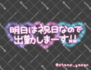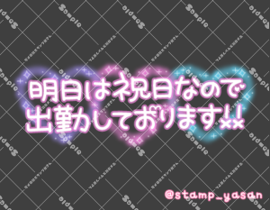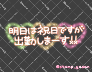 「明日は祝日ですが出勤しまーす!!」のスタンプ