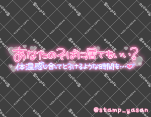 「ばぶばぶする?」のスタンプ 2025 10/07 2025年10月7日 0 こちらの画像はサンプルです。保存やSNS等への掲載はご遠慮ください。会員登録・ログイン後に表示される『本画像』をダウンロードしてご利用ください。 カラータグ甘えんぼばぶ 甘えんぼ ばぶ 文字 タメ語 横書き 透過 この記事が気に入ったら フォローしてね! Follow @stamp_yasan_sub Follow me! 「あなたのそばに居てもいい?体温感じ合ってとろけるような時間を…♡」のスタンプ 「すてきな差し入れありがとう 秋はおいしいものがいっぱいで幸せだ」のスタンプ