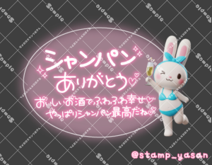 「シャンパンありがとう♡おいしいお酒でふわふわ幸せ♡やっぱりシャンパン最高だね」のスタンプ 2025 7/28 2025年7月28日 0 こちらの画像はサンプルです。保存やSNS等への掲載はご遠慮ください。会員登録・ログイン後に表示される『本画像』をダウンロードしてご利用ください。 用途差し入れ・プレゼントへのお礼お礼・感謝予約・来店へのお礼カラータグありがとううさぎお酒 ありがとう うさぎ お酒 文字 イラスト タメ語 横書き 透過 この記事が気に入ったら フォローしてね! Follow @stamp_yasan_sub Follow me! 「今月初シャンパンTHANK YOU」のスタンプ 「ラスト枠のみお酒飲めます」のスタンプ
