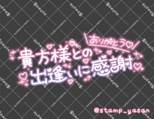 「ご主人様との出逢いに感謝 ありがとう」のスタンプ 2023 8/28 2023年8月28日 0 こちらの画像はサンプルです。保存やSNS等への掲載はご遠慮ください。会員登録・ログイン後に表示される『本画像』をダウンロードしてご利用ください。 用途予約・来店へのお礼お礼・感謝お礼・感謝全般カラータグありがとう感謝ご主人様 ありがとう 感謝 ご主人様 文字 タメ語 横書き 透過 この記事が気に入ったら フォローしてね! Follow @stamp_yasan_sub Follow me! 「貴方様との出逢いに感謝 ありがとう」のスタンプ 「旦那様との出逢いに感謝 ありがとう」のスタンプ