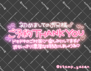 「初めましてのお兄様♡ご予約THANK YOU ドキドキのご対面♡楽しみにしてます おもいっきり濃厚な時間にしましょうね」のスタンプ 2025 12/10 2025年12月10日 0 こちらの画像はサンプルです。保存やSNS等への掲載はご遠慮ください。会員登録・ログイン後に表示される『本画像』をダウンロードしてご利用ください。 用途お礼・感謝予約・来店へのお礼カラータグありがとう新規客濃厚予約 ありがとう 新規客 濃厚 予約 文字 敬語 横書き 透過 この記事が気に入ったら フォローしてね! Follow @stamp_yasan_sub Follow me! 「寒い中会いにきてくれてありがとう」のスタンプ 「今日も1日おつかれさまでした♡」のスタンプ