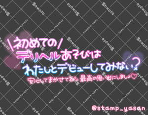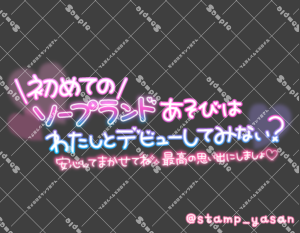 「初めてのソープランドあそびはわたしとデビューしてみない?安心してまかせてね 最高の思い出にしましょ♡」のスタンプ