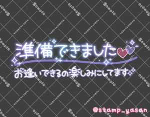 「準備できたよ 逢えるの楽しみにしてるね」のスタンプ 2024 11/25 2024年11月25日 0 こちらの画像はサンプルです。保存やSNS等への掲載はご遠慮ください。会員登録・ログイン後に表示される『本画像』をダウンロードしてご利用ください。 用途出勤・退勤お誘い・待機中出勤・退勤・お誘いカラータグ待ってる出勤 待ってる 出勤 文字 タメ語 横書き 透過 この記事が気に入ったら フォローしてね! Follow @stamp_yasan_sub Follow me! 「準備できました お逢いできるの楽しみにしてます」のスタンプ 「みつけてくれてありがとう この出逢いは偶然?それとも必然?わたしは特別な出逢いだって信じてる 2人だけの時間いっぱいすごしたいな」のスタンプ