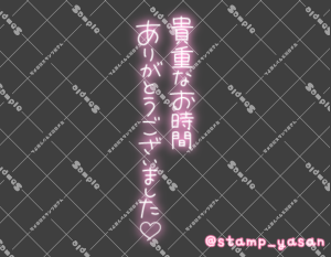 「貴重なお時間ありがとうございました」のスタンプ 2026 1/07 2026年1月7日 0 こちらの画像はサンプルです。保存やSNS等への掲載はご遠慮ください。会員登録・ログイン後に表示される『本画像』をダウンロードしてご利用ください。 用途お礼・感謝予約・来店へのお礼カラータグありがとう ありがとう 文字 敬語 縦書き 透過 この記事が気に入ったら フォローしてね! Follow @stamp_yasan_sub Follow me! 「HP残りわずかなお兄様へ わたしの腕の中で全回復しちゃう?あなたのセーブポイントになりたいな」のスタンプ 「キミを世界一気持ち良くするウォンナ」のスタンプ