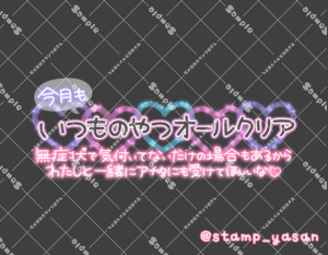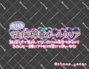 「今月もいつものやつオールクリア 無症状で気付いてないだけの場合もあるからわたしと一緒にアナタにも受けてほしいな」のスタンプ