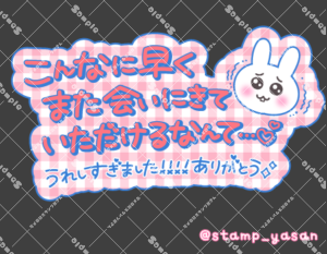 「こんなに早くまた会いにきていただけるなんて…♡うれしすぎました!!!!ありがとう」のスタンプ