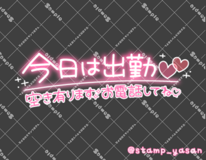 「今日は出勤 ご予約ありがとう またあとでね」のスタンプ