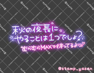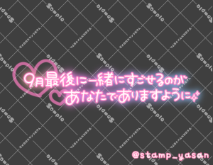 「今日も楽しんでこーね」のスタンプ 2025 9/29 2025年9月29日 0 こちらの画像はサンプルです。保存やSNS等への掲載はご遠慮ください。会員登録・ログイン後に表示される『本画像』をダウンロードしてご利用ください。 用途出勤・退勤・お誘いあいさつ出勤・退勤日常のあいさつカラータグ本日出勤うさぎお誘い 本日 出勤 うさぎ お誘い 文字 イラスト タメ語 横書き 透過 この記事が気に入ったら フォローしてね! Follow @stamp_yasan_sub Follow me! 「秋の夜長にやることは1つでしょ?むらむらMAXで待ってるよ♡」のスタンプ 「9月最後に一緒にすごせるのがあなたでありますように」のスタンプ
