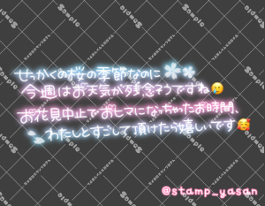 「むっちりあまえんぼでぃ」のスタンプ 2025 4/01 2025年4月1日 0 こちらの画像はサンプルです。保存やSNS等への掲載はご遠慮ください。会員登録・ログイン後に表示される『本画像』をダウンロードしてご利用ください。 カラータグ甘えんぼむちむちぽっちゃり 甘えんぼ むちむち ぽっちゃり 文字 タメ語 横書き 透過 この記事が気に入ったら フォローしてね! Follow @stamp_yasan_sub Follow me! 「3月を一緒にすごしてくれてありがとうございました 4月もよろしくお願いします」のスタンプ 「せっかくの桜の季節なのに今週はお天気が残念そうですね🥲お花見中止でおヒマになっちゃったお時間、わたしとすごして頂けたら嬉しいです🥰」のスタンプ