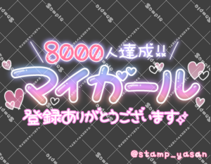 「8000人達成!!マイガール登録ありがとうございます」のスタンプ 2025 3/04 2025年3月4日 0 こちらの画像はサンプルです。保存やSNS等への掲載はご遠慮ください。会員登録・ログイン後に表示される『本画像』をダウンロードしてご利用ください。 用途お礼・感謝お礼・感謝全般カラータグマイガール マイガール 文字 敬語 横書き 透過 この記事が気に入ったら フォローしてね! Follow @stamp_yasan_sub Follow me! 「7000人達成!!マイガール登録ありがとうございます」のスタンプ 「9000人達成!!マイガール登録ありがとうございます」のスタンプ