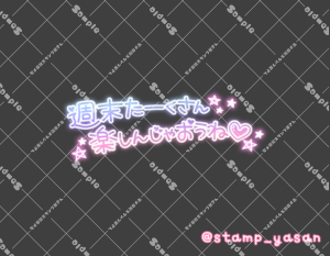 「濃厚過激な連休なんていかがですか?」のスタンプ 2023 10/06 2023年10月6日 0 こちらの画像はサンプルです。保存やSNS等への掲載はご遠慮ください。会員登録・ログイン後に表示される『本画像』をダウンロードしてご利用ください。 用途週末・週初めのあいさつあいさつカラータグ濃厚連休 濃厚 連休 文字 敬語 横書き 透過 この記事が気に入ったら フォローしてね! Follow @stamp_yasan_sub Follow me! 「週末たーくさん楽しんじゃおうね」のスタンプ 「連休はまったりホテルデートしたいな」のスタンプ