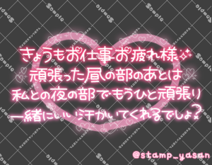 「おみせにTELしてね」のスタンプ 2024 6/03 2024年6月3日 0 こちらの画像はサンプルです。保存やSNS等への掲載はご遠慮ください。会員登録・ログイン後に表示される『本画像』をダウンロードしてご利用ください。 用途予約受付中・予約の説明出勤・退勤・お誘いスケジュール・予約お誘い・待機中カラータグ待ってるお問い合わせ 待ってる お問い合わせ 文字 タメ語 横書き 透過 この記事が気に入ったら フォローしてね! Follow @stamp_yasan_sub Follow me! 「おといあわせありがとう」のスタンプ 「きょうもお仕事お疲れ様 頑張った昼の部のあとは私との夜の部でもうひと頑張り一緒にいい汗かいてくれるでしょ?」のスタンプ
