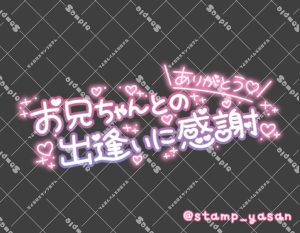「お兄ちゃんとの出逢いに感謝 ありがとう」のスタンプ 2023 8/28 2023年8月28日 0 こちらの画像はサンプルです。保存やSNS等への掲載はご遠慮ください。会員登録・ログイン後に表示される『本画像』をダウンロードしてご利用ください。 用途予約・来店へのお礼お礼・感謝お礼・感謝全般カラータグありがとう感謝 ありがとう 感謝 文字 タメ語 横書き 透過 この記事が気に入ったら フォローしてね! Follow @stamp_yasan_sub Follow me! 「お兄様との出逢いに感謝 ありがとう」のスタンプ 「貴方様との出逢いに感謝 ありがとう」のスタンプ
