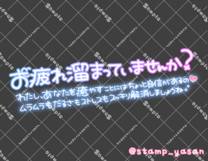 「お疲れ溜まっていませんか?わたし、あなたを癒やすことにはちょっと自信があるの♡ムラムラもだるさもストレスもスッキリ解消しましょうね」のスタンプ 2025 5/12 2025年5月12日 0 こちらの画像はサンプルです。保存やSNS等への掲載はご遠慮ください。会員登録・ログイン後に表示される『本画像』をダウンロードしてご利用ください。 用途日常のあいさつあいさつカラータグ癒やしおつかれさまムラムラマッサージリフレスッキリ 癒やし おつかれさま ムラムラ マッサージ リフレ スッキリ 文字 敬語 横書き 透過 この記事が気に入ったら フォローしてね! Follow @stamp_yasan_sub Follow me! 「毎回濃厚なお時間ありがとう」のスタンプ 「五月病吹き飛ばしちゃうような甘〜いごほうび時間すごしましょ」のスタンプ