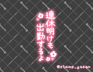 「連休明けも出勤します」のスタンプ 2023 4/30 2023年4月30日 0 こちらの画像はサンプルです。保存やSNS等への掲載はご遠慮ください。会員登録・ログイン後に表示される『本画像』をダウンロードしてご利用ください。 用途スケジュール・予約あいさつ週末・週初めのあいさつスケジュール更新報告カラータグ連休出勤予定 連休 出勤予定 文字 敬語 縦書き 透過 この記事が気に入ったら フォローしてね! Follow @stamp_yasan_sub Follow me! 「連休明けも出勤するよ」のスタンプ 「今日はわたしとイケナイことしよ?」のスタンプ