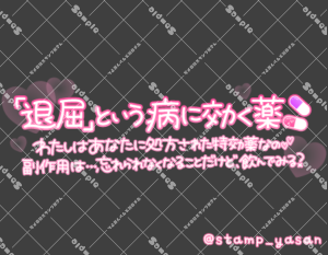 「最近ちょっとだけあなたが足りてないみたい…至急過剰摂取させてくれませんか?」のスタンプ 2025 6/27 2025年6月27日 0 こちらの画像はサンプルです。保存やSNS等への掲載はご遠慮ください。会員登録・ログイン後に表示される『本画像』をダウンロードしてご利用ください。 カラータグひとクセある系 ひとクセある系 文字 敬語 タメ語 横書き 透過 この記事が気に入ったら フォローしてね! Follow @stamp_yasan_sub Follow me! 「わたしだけが知ってる君の素敵なところ、もっともっとひとりじめさせて?」のスタンプ 「『退屈』という病に効く薬 わたしはあなたに処方された特効薬なの♡副作用は…忘れられなくなることだけど、飲んでみる?」のスタンプ