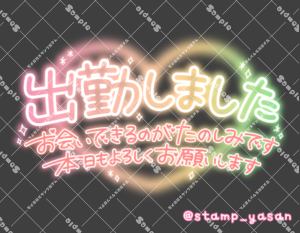 「出勤しました お会いできるのがたのしみです 本日もよろしくお願いします」のスタンプ
