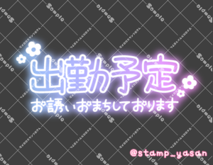 「ラブコールおまちしてます 出勤予定」のスタンプ 2023 5/31 2023年5月31日 0 こちらの画像はサンプルです。保存やSNS等への掲載はご遠慮ください。会員登録・ログイン後に表示される『本画像』をダウンロードしてご利用ください。 用途スケジュール・予約スケジュール更新報告カラータグ待ってるお問い合わせ出勤予定 待ってる お問い合わせ 出勤予定 文字 敬語 横書き 透過 この記事が気に入ったら フォローしてね! Follow @stamp_yasan_sub Follow me! 「出勤予定 お誘いおまちしております」のスタンプ 「6月も元気に笑顔でがんばろうね」のスタンプ