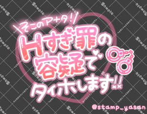 「逮捕しちゃうぞ」のスタンプ 2023 6/22 2023年6月22日 0 こちらの画像はサンプルです。保存やSNS等への掲載はご遠慮ください。会員登録・ログイン後に表示される『本画像』をダウンロードしてご利用ください。 カラータグハロウィンポリスコスプレイメクラ ハロウィン ポリス コスプレ イメクラ 文字 タメ語 横書き 透過 この記事が気に入ったら フォローしてね! Follow @stamp_yasan_sub Follow me! 「そこのアナタ!Hすぎ罪の容疑でタイホします!!」のスタンプ 「空き枠ラス1!」のスタンプ