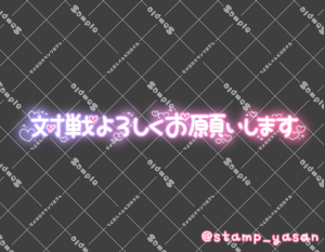 「対戦よろしくお願いします」のスタンプ 2025 11/10 2025年11月10日 0 こちらの画像はサンプルです。保存やSNS等への掲載はご遠慮ください。会員登録・ログイン後に表示される『本画像』をダウンロードしてご利用ください。 用途お誘い・待機中日常のあいさつ出勤・退勤・お誘いあいさつカラータグ対戦よろしくお願いします 対戦 よろしくお願いします 文字 敬語 横書き 透過 この記事が気に入ったら フォローしてね! Follow @stamp_yasan_sub Follow me! 「対戦ありがとうございました」のスタンプ 「シフト変更してます 詳しくはHPをご覧ください」のスタンプ