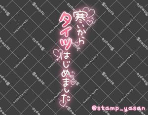 「寒いからタイツはじめました」のスタンプ 2025 10/27 2025年10月27日 0 こちらの画像はサンプルです。保存やSNS等への掲載はご遠慮ください。会員登録・ログイン後に表示される『本画像』をダウンロードしてご利用ください。 用途季節・イベント春夏秋冬天候・気温カラータグフェチ寒い フェチ 寒い 文字 敬語 縦書き 透過 この記事が気に入ったら フォローしてね! Follow @stamp_yasan_sub Follow me! 「黒タイツフェチさんに刺され」のスタンプ 「全身すべすべだよ♡密着して、濃厚に…あなたの肌で感じて♡」のスタンプ