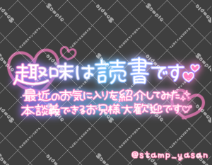 「積読リスト」のスタンプ 2025 10/27 2025年10月27日 0 こちらの画像はサンプルです。保存やSNS等への掲載はご遠慮ください。会員登録・ログイン後に表示される『本画像』をダウンロードしてご利用ください。 カラータグうさぎ趣味 うさぎ 趣味 文字 イラスト タメ語 縦書き 透過 この記事が気に入ったら フォローしてね! Follow @stamp_yasan_sub Follow me! 「趣味は読書です♡最近のお気に入りを紹介してみた 本談義できるお兄様大歓迎です」のスタンプ 「黒タイツフェチさんに刺され」のスタンプ