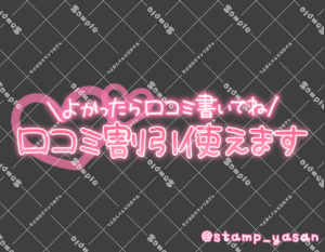 「よかったら口コミ書いてね 口コミ割引使えます」のスタンプ 2026 4/21 2026年4月21日 0 こちらの画像はサンプルです。保存やSNS等への掲載はご遠慮ください。会員登録・ログイン後に表示される『本画像』をダウンロードしてご利用ください。 カラータグ口コミ割引 口コミ 割引 文字 敬語 タメ語 横書き 透過 この記事が気に入ったら フォローしてね! Follow @stamp_yasan_sub Follow me! 「本指名様心からありがとうございます」のスタンプ 「差し入れありがとうございます♡また楽しいお時間すごしましょうね」のスタンプ